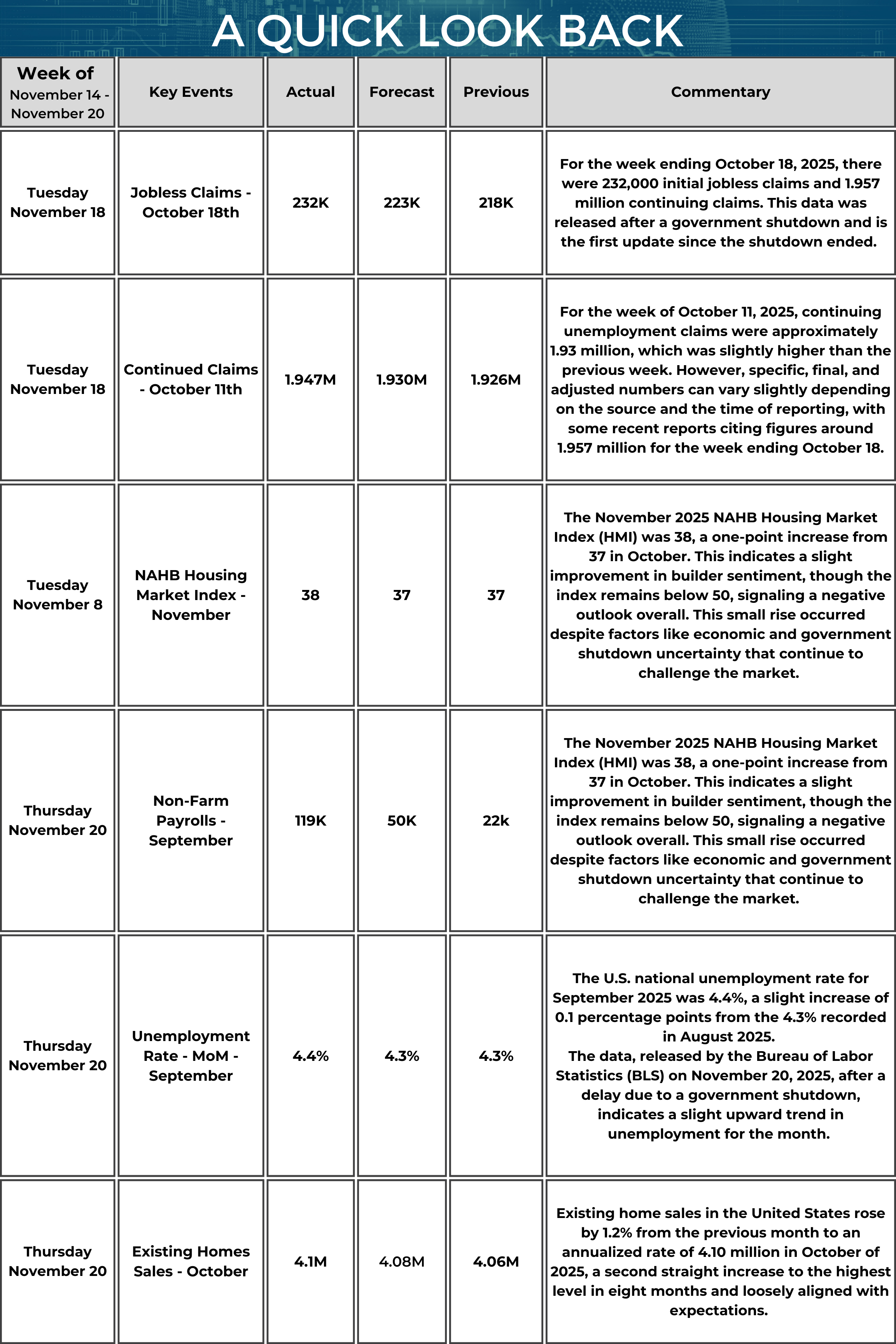 From November14th to November 20th interest rates remained relatively stable, with the federal funds effective rate holding around 3.87% to 3.88%,and mortgage rates showing a slight decline. Rates were among the lowest seen in 2025, offering some relief to borrowers amid persistent inflation pressures. A stable rate environment with modest mortgage relief is encouraging for borrowers to act while affordability improves.