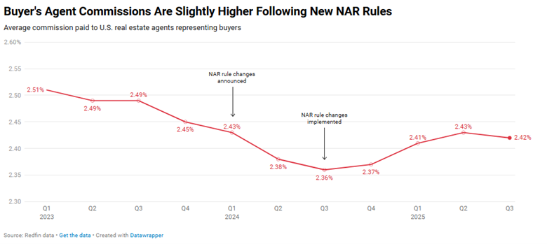 • The Average Buyer’s Agent Commission has Risen Slightly Since New NAR Rules Went Into Effect