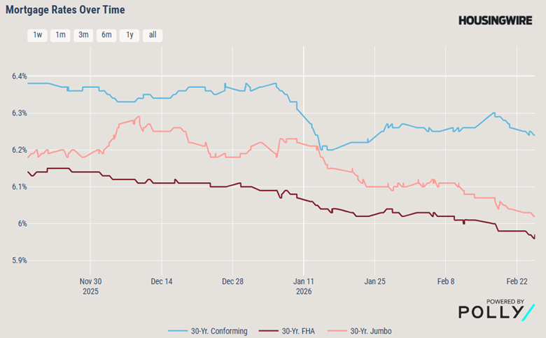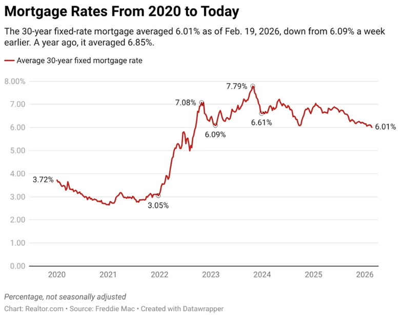 Interest rates from February 20th to February 26th centered on a clear theme, rates hovered near multi‑year lows, improving affordability and creating momentum. The period did not include a Federal Reserve meeting, so the most meaningful developments came from mortgage‑rate movements, buyer affordability shifts, and refinance opportunity signals.