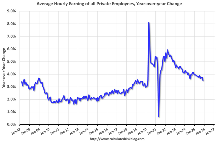 If an economy is at full employment and enjoys stable inflation, wage growth will equal labor productivity growth plus inflation (LPG+I). If wages exceed LPG+I, unemployment is too low and inflationary pressure will build. If the opposite is true, there’s labor market slack and inflationary pressures will weaken. Wage growth is now 3.8%, and LPG+I is 4.6%, signaling modest excess labor supply even though the unemployment rate is just 4.4%. -Elliot Eisenberg, Economist